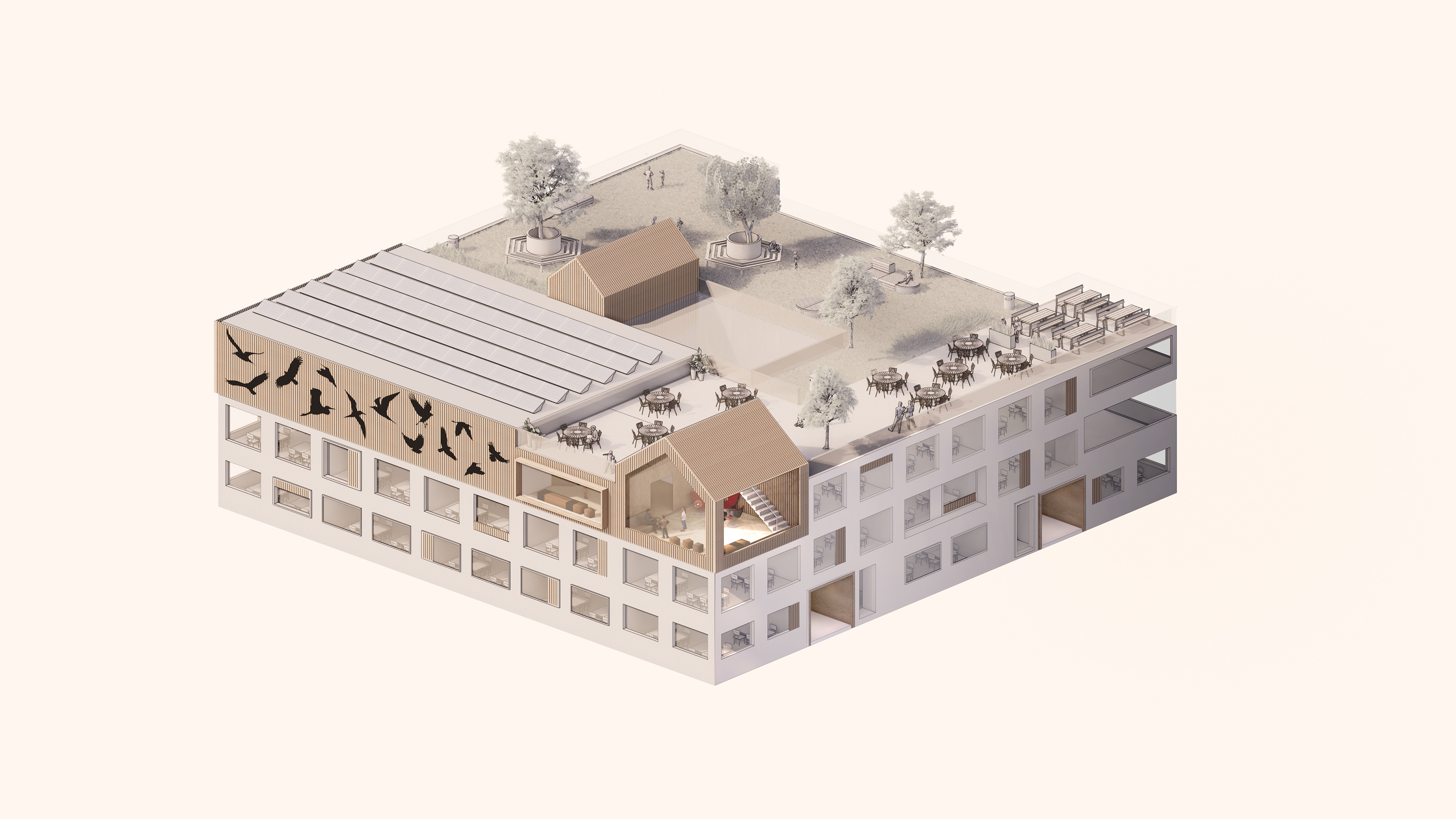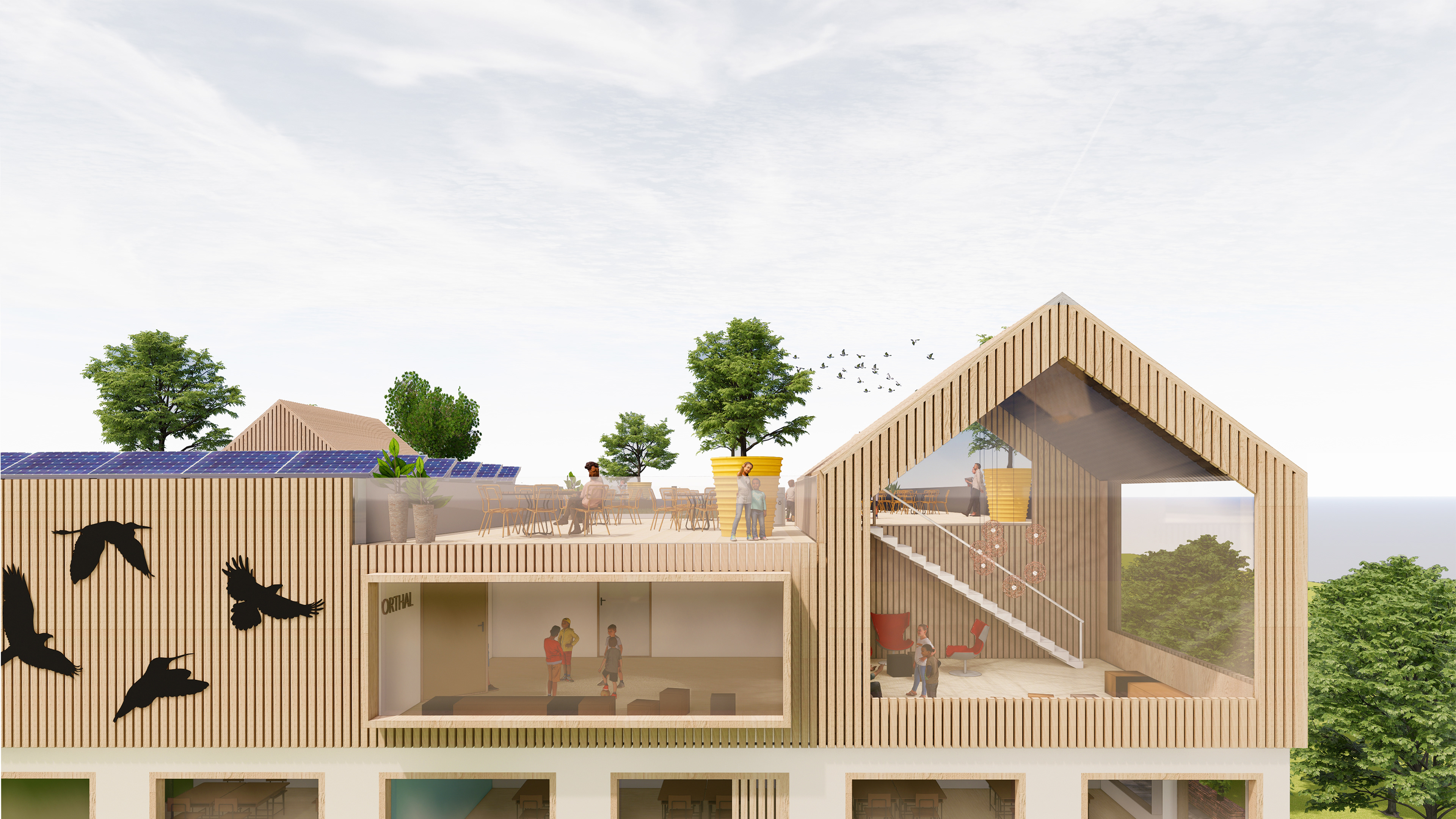 For this project I made a design for a school. Two primary schools and a day nursery should be located in this building.